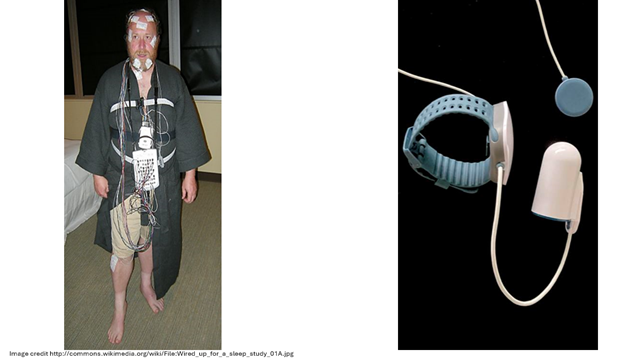 Pictured above is a patient undergoing an in-lab polysomnogram (overnight sleep study) and a home sleep test. The technology has improved a great deal over the last 20 years. Many patients would qualify for a home sleep test.